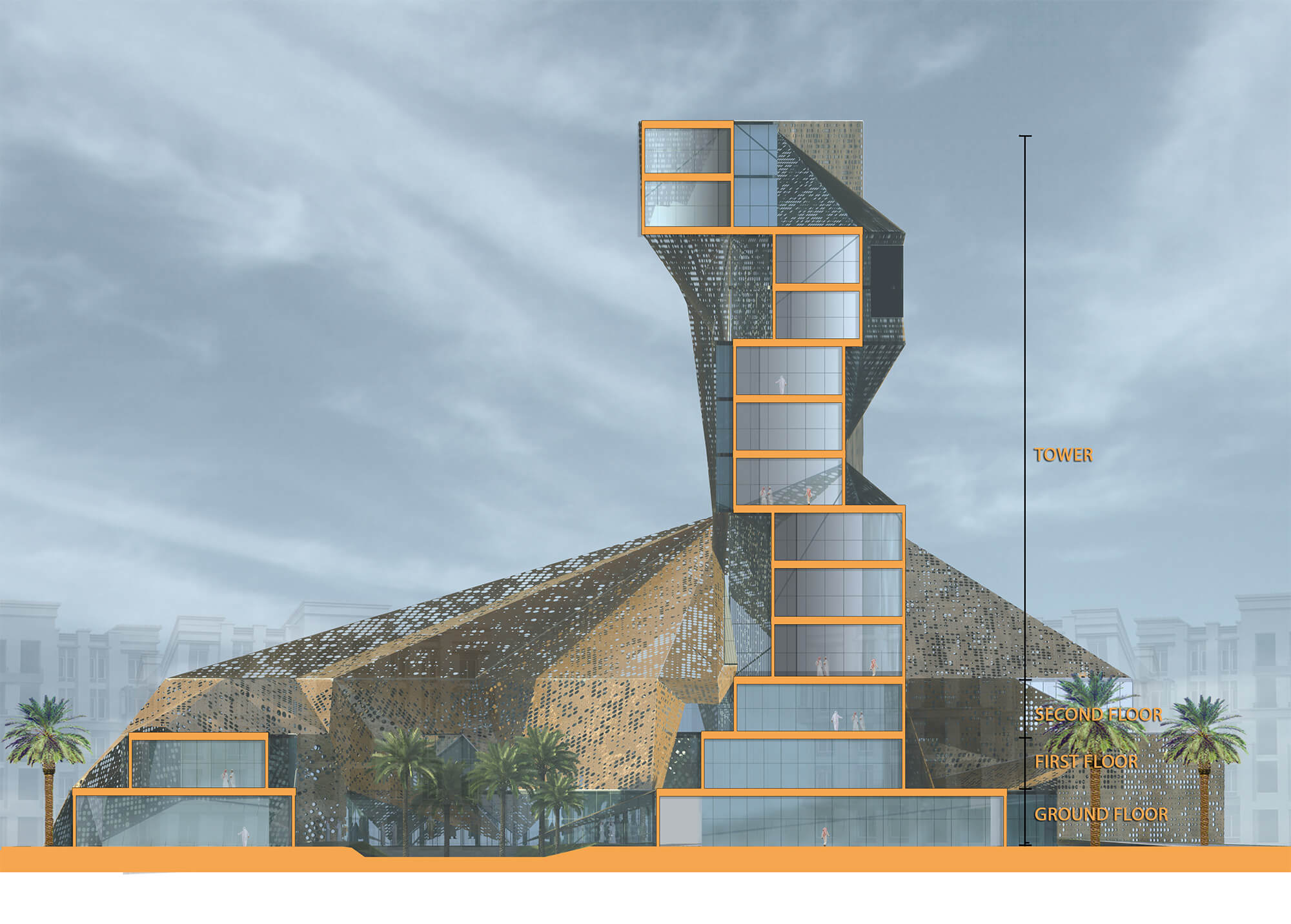 The Media Center is MENA region project is a distinguished of podium and tower. Covering a total built-up area of 35,000 square meters, the tower is a comprehensive architectural and engineering endeavor. It features state-of-the-art media facilities, dedicated staff areas, and advanced educational spaces. The design seamlessly integrates functionality with modern aesthetics, supporting the university’s multifaceted media and academic requirements. This high-profile project is poised to enhance KAAU’s role in media and education, providing a sophisticated and adaptable environment that aligns with Jeddah’s urban landscape.